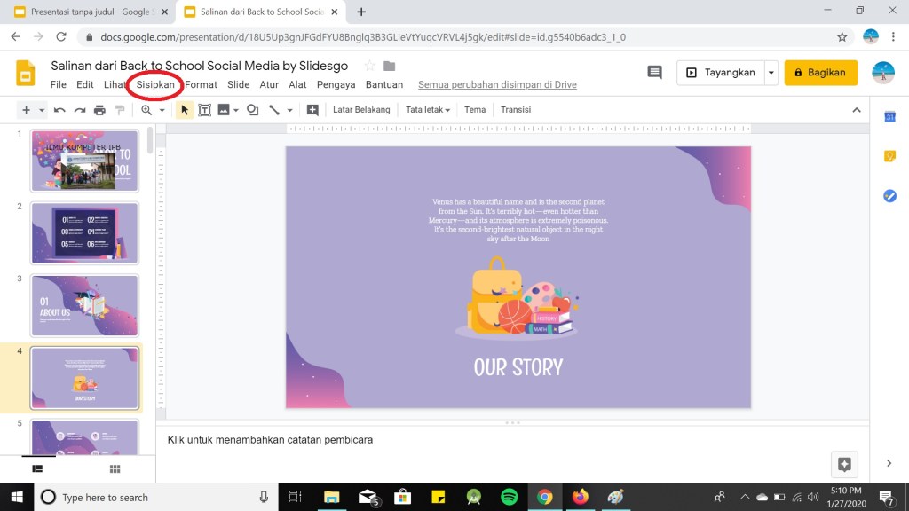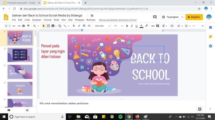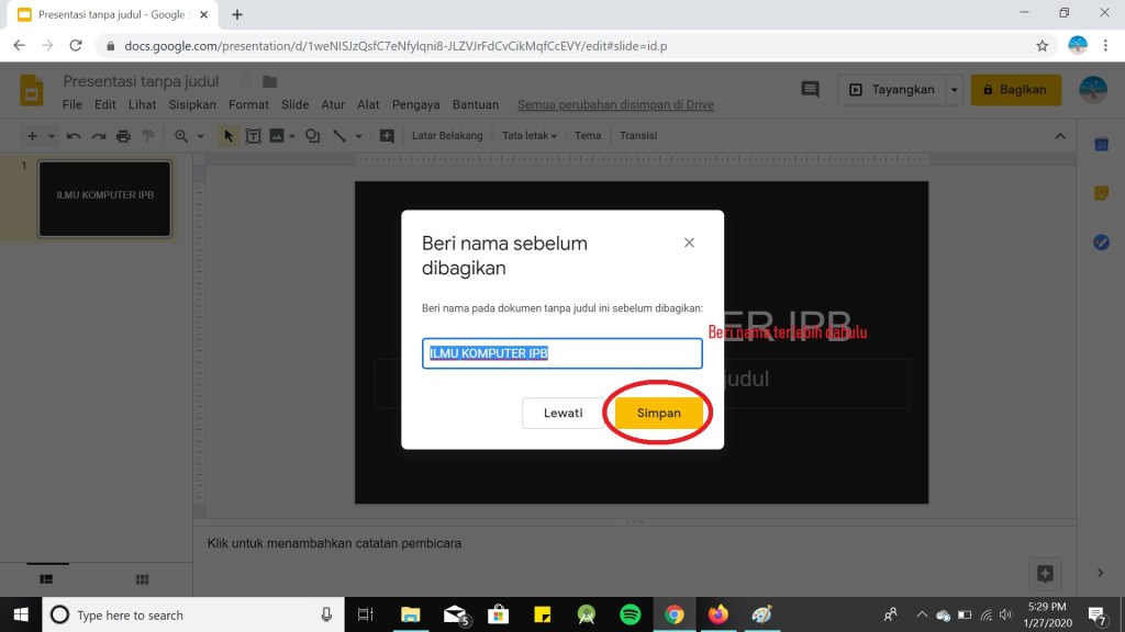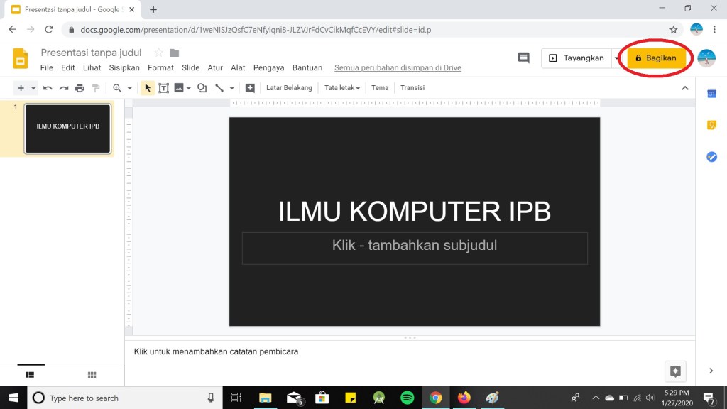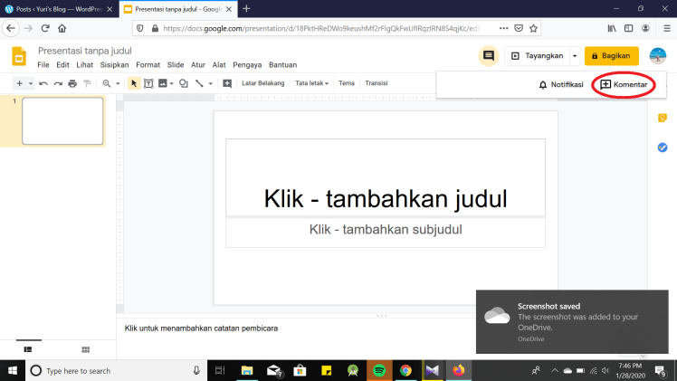 Untuk memudahkan apa yang sedang Anda kerjakan dengan teman kalian, kalian dapat mengkritik dengan menambahkan komentar. Berikut cara menambahkan komentar pada Google Slide :
