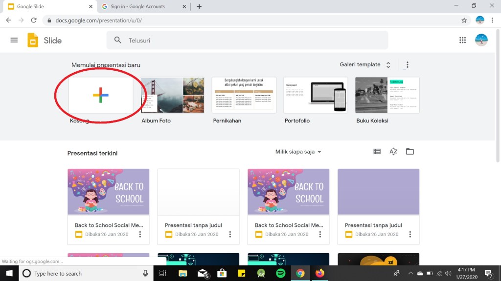 Untuk memulai menggunakan Google Slide, pertama buka website Google Slide dan ikuti langkah berikut ini :