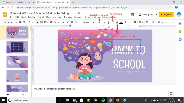 Berikut adalah cara penggunaan beberapa fitur yang ada di Google Slide :