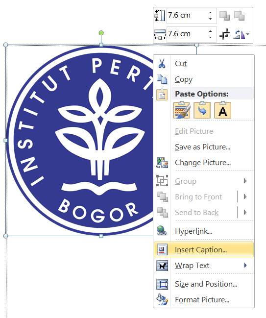 Untuk menambahkan gambar tekan insert >>> pictures >>> pilih foto yang ingin ditambahkan >>> ok. Pada foto yang ingin diberi judul “tekan kanan pada gambar” >>> “insert caption”.