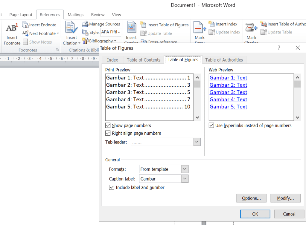 5. Membuat Daftar Gambar dan Daftar Tabel