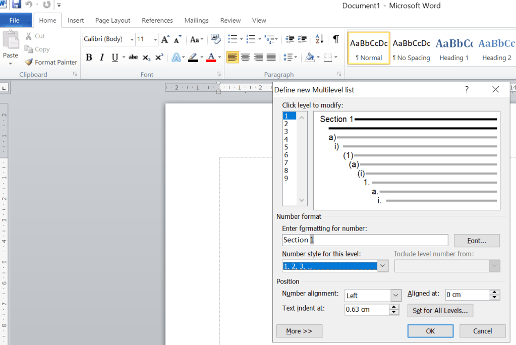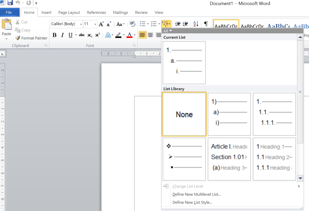 Tekan multilevel list, lalu pilih multilevel list.